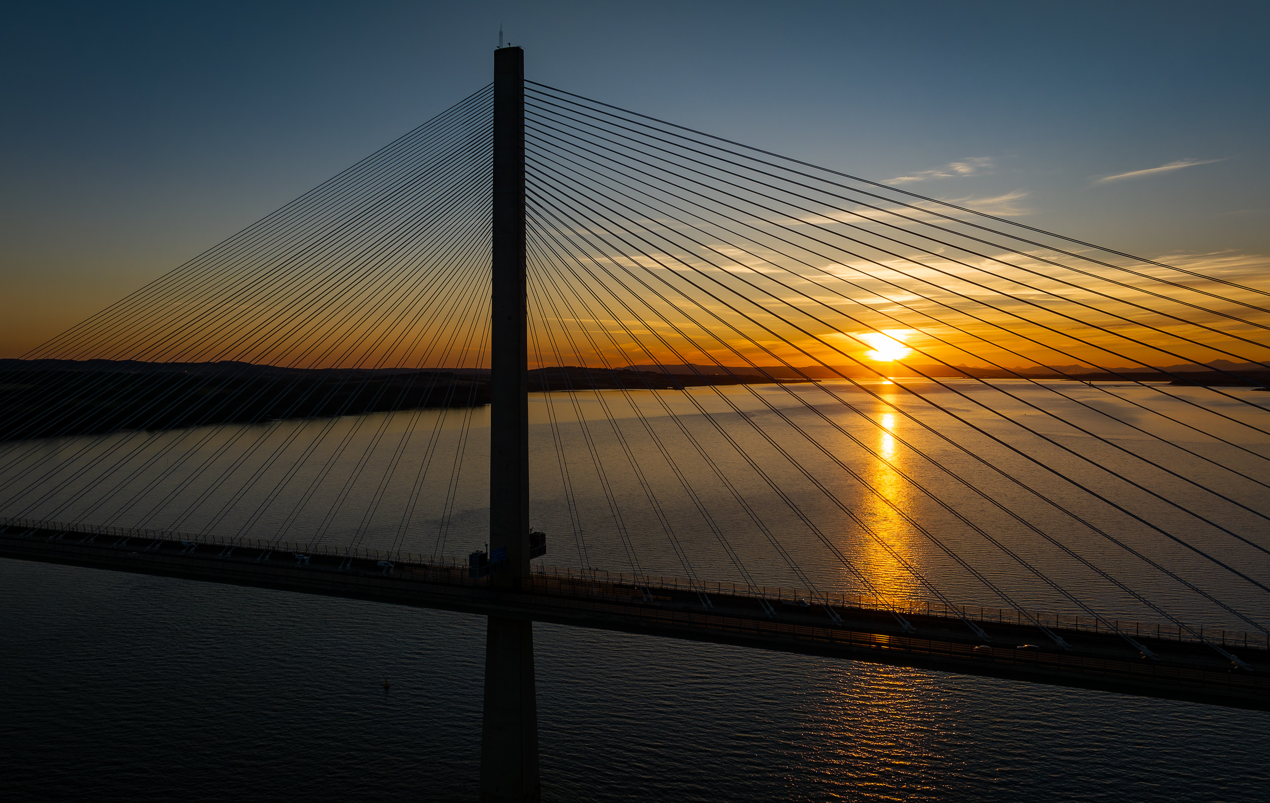 This is one of the photos I was looking at, taken with the Mavic 3 Pro drone near the Queensferry Crossing at sunset.