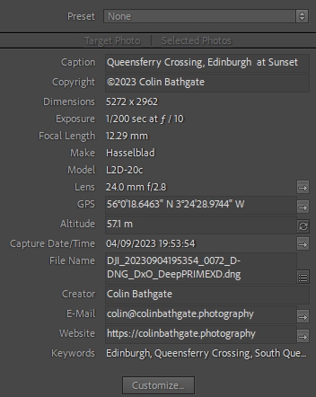 I could also search by keywords that I’ve added to the photo, so in a matter of seconds I can find every photograph containing the keyword ‘Queensferry’ or ‘Drone’, or any combination of keywords.
