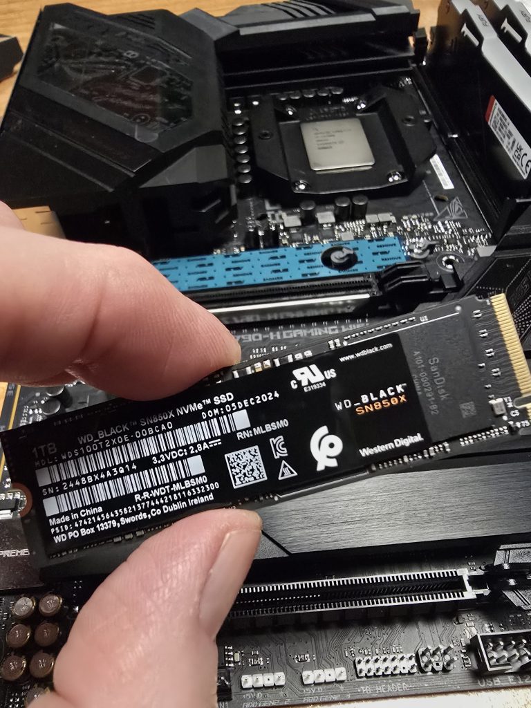 Installing both my NVMe drives onto the motherboard was much easier than installing the old spinning disks I’ve used in the past!