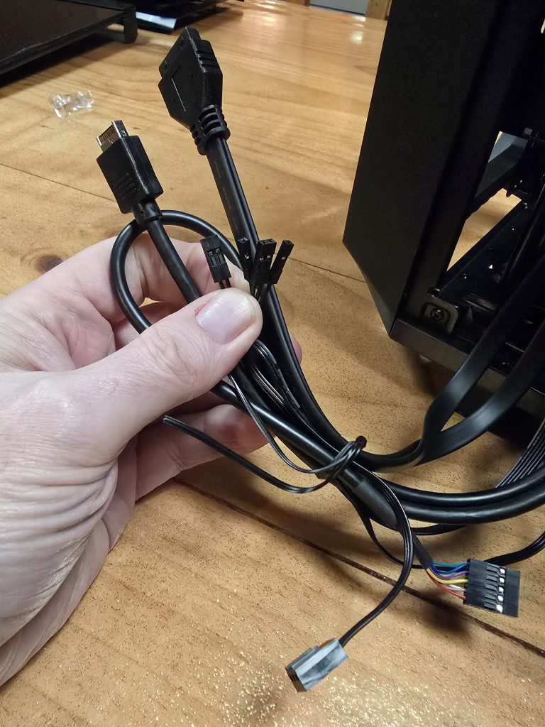 The smaller connectors were particularly fiddly to install, you need good light to make sure they’re connected to the right pins on the motherboard. This is where study of your motherboard layout comes in! It’s also easy to bend pins, so care is required.