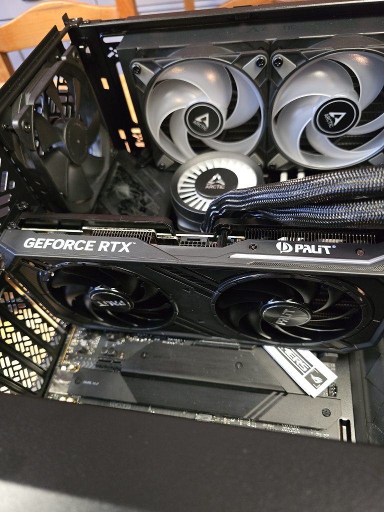 The more powerful the GPU, the better it is at handling high-quality images and video. The GPU I went for is considered a good mid-range card for video work, containing 12GB of so-called VRAM (Video RAM) – 8GB is considered the minimum. It’s also a pretty big beast compared to cards I’ve used in the past, it even has two built-in fans just to keep itself cool!